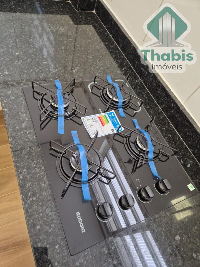 Acabamentos em piso vinílicos, bancada de granito, iluminação em led e teto em gesso.