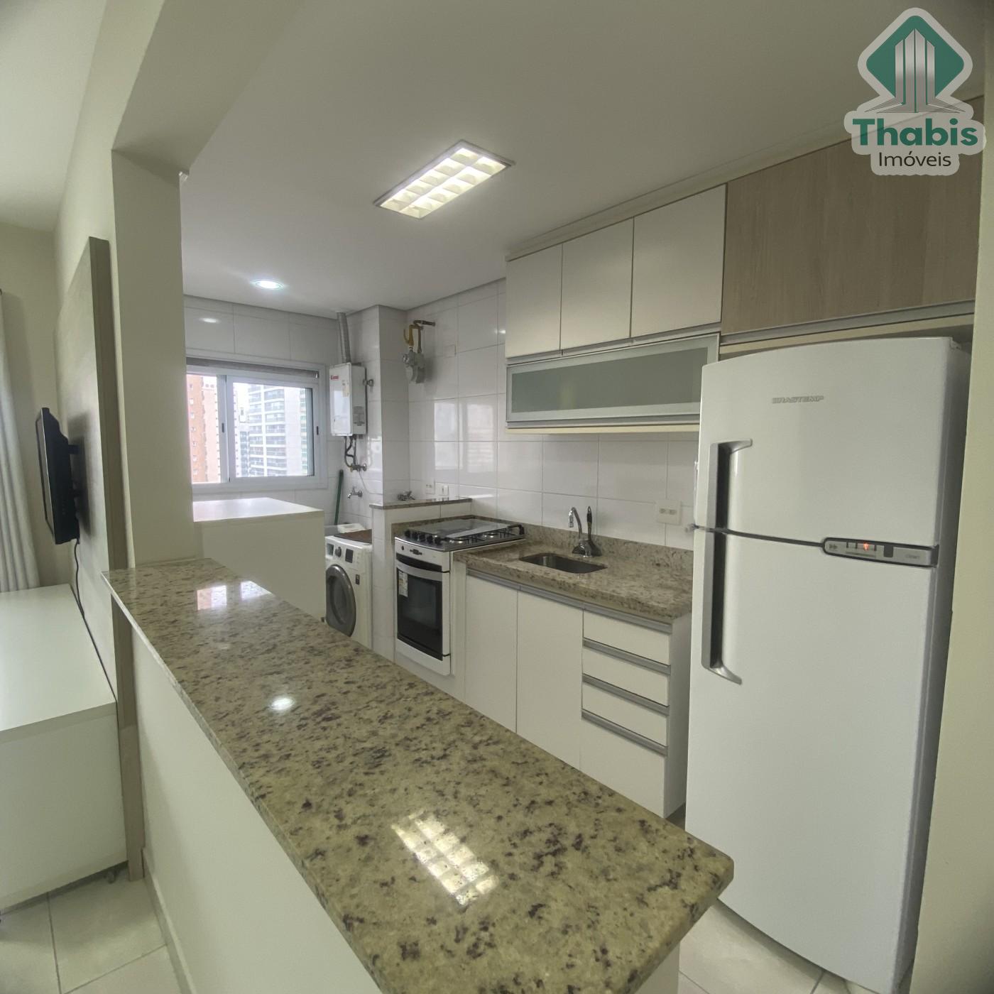 Apartamento de 1 dormitório totalmente mobiliado, com móveis planejados, eletrodomésticos e acabamento moderno. Possui sala ampliada para dois ambientes, cozinha integrada à lavanderia e 1 vaga de garagem.
